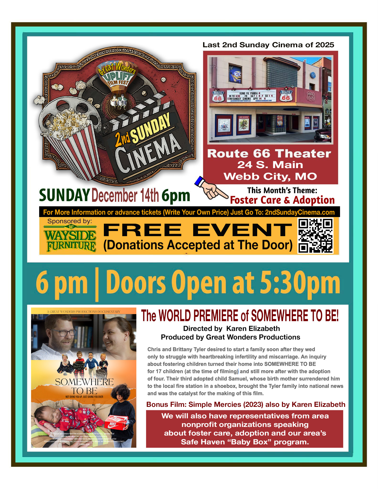 2nd Sunday Cinema is a monthly celebration of films produced by regional filmmakers from Arkansas, Kansas, Missouri and Oklahoma. Every 2nd Sunday of the month, throughout the year, Great Wonders Productions will host screenings of films selected by our Uplift Film Fest jury. Whenever possible, filmmakers attend Second Sunday Cinema in person to introduce their films and host q&a sessions. They also receive a portion of the net box office revenue. This monthly cinematic arts event is meant to support, showcase and celebrate the awesome filmmaking talent in our region of the country. When you buy tickets to 2nd Sunday Cinema, you are supporting filmmaking and cinematic storytelling in the Four States!